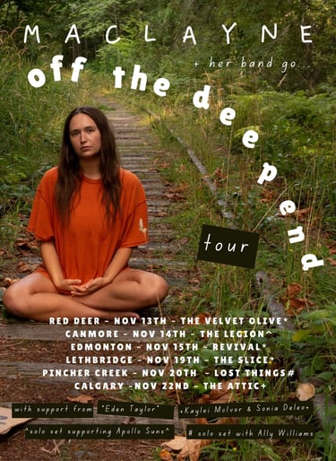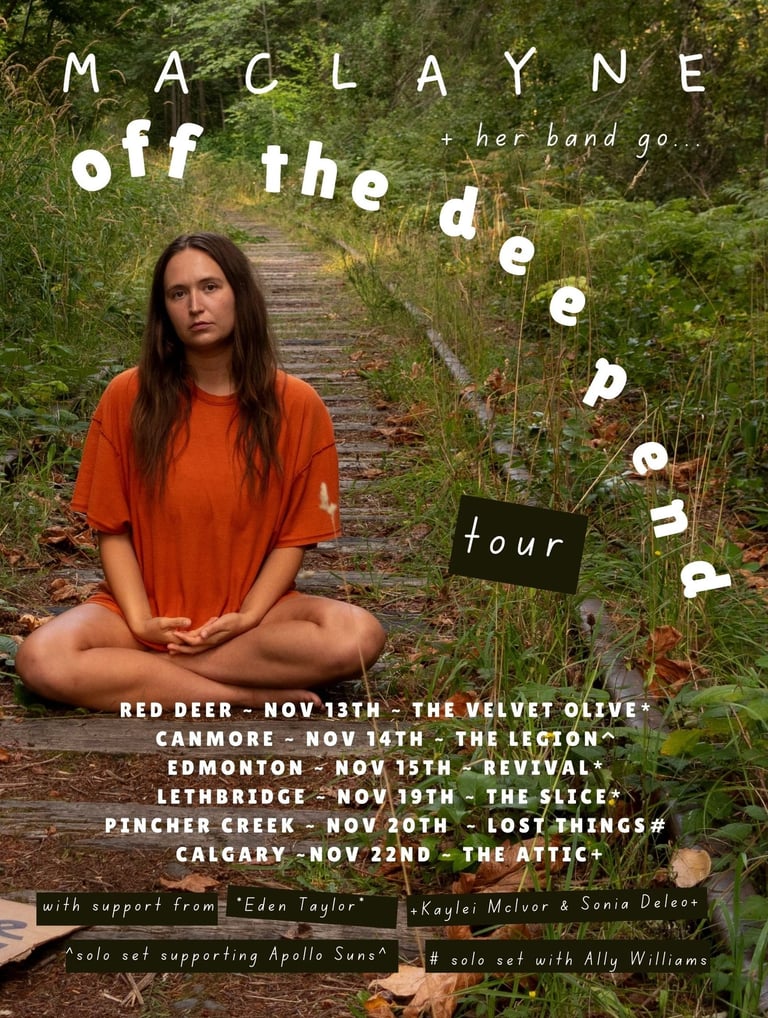 Maclayne is a Calgary- and Toronto-based independent singer-songwriter whose music is as fun and hooky as it is profound and powerful. A natural storyteller with a gift for connecting deeply with her audience, she blends folk and pop into a dynamic sound marked by heartfelt lyricism and a voice of striking warmth and character.